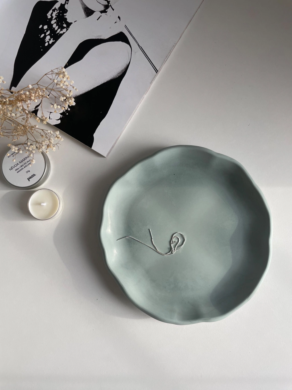 Bandeja em cimento redonda orgânica.