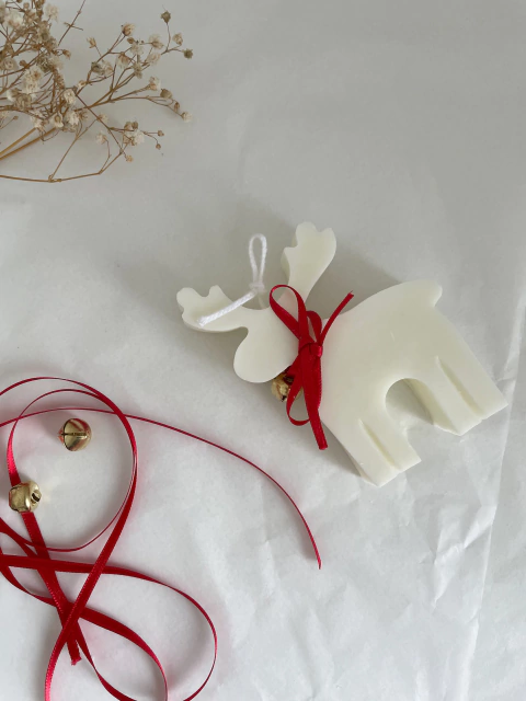 Uma vela com formato de super fofo de um Alce, símbolo de comunidade, força, vida e abundância.