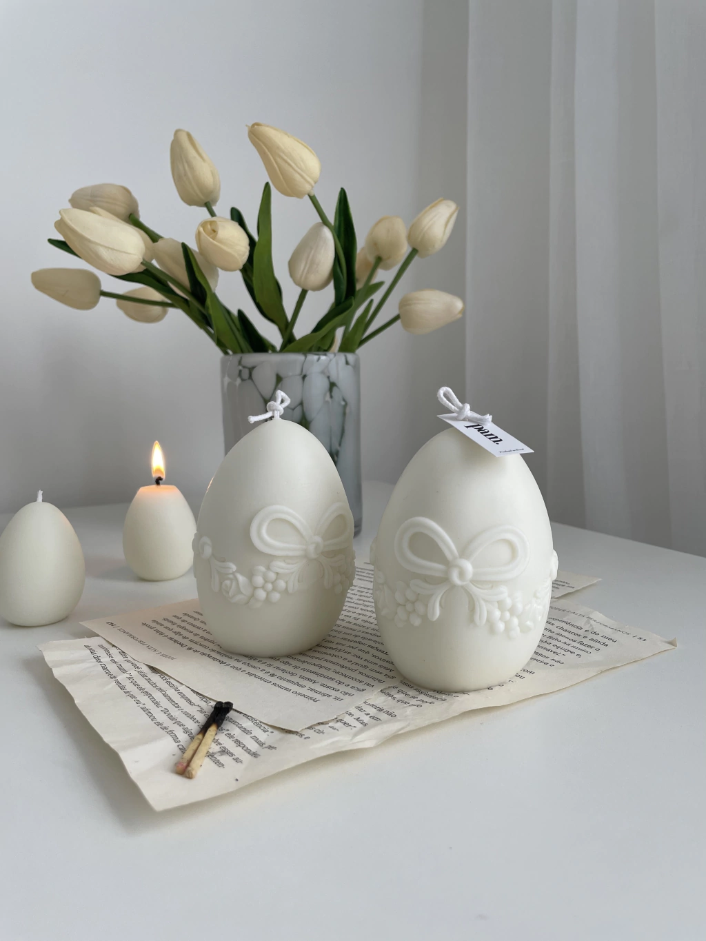 Com o formato de um delicado ovo de Páscoa e adornada com detalhes de flores e um laço delicado esculpidos, esta vela é mais do que uma peça decorativa - é uma celebração da beleza dessa época do ano.